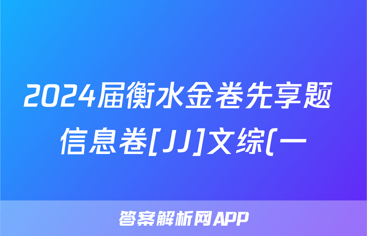 2024届衡水金卷先享题 信息卷[JJ]文综(一)1答案正在持续更新,本期2024衡中同卷单元卷答案网为大家整理了相关试题及答案,供大家查缺补漏,高效提升成绩。