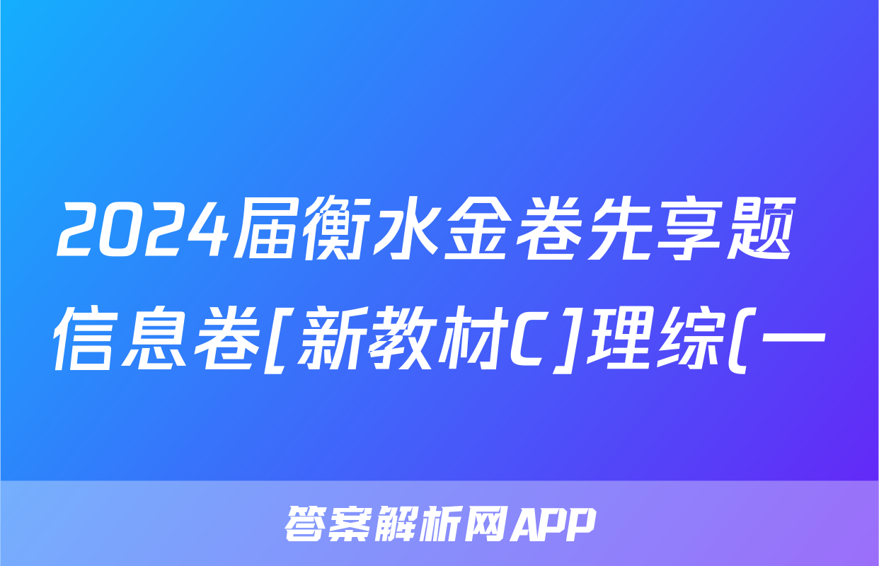1、2024届衡水金卷先享题 信息卷(新教材C)理综(一)1答案