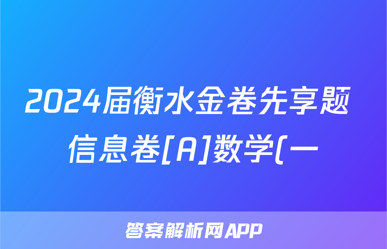 2024届衡水金卷先享题 信息卷[A]数学(一)1试题