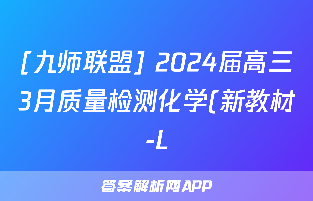 [九师联盟] 2024届高三3月质量检测化学(新教材-L)试题