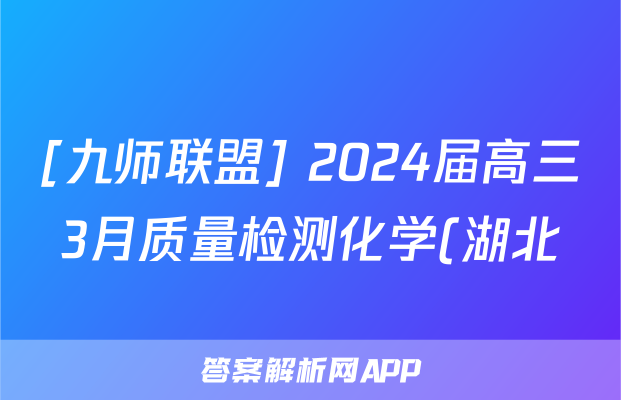 [九师联盟] 2024届高三3月质量检测化学(湖北)答案