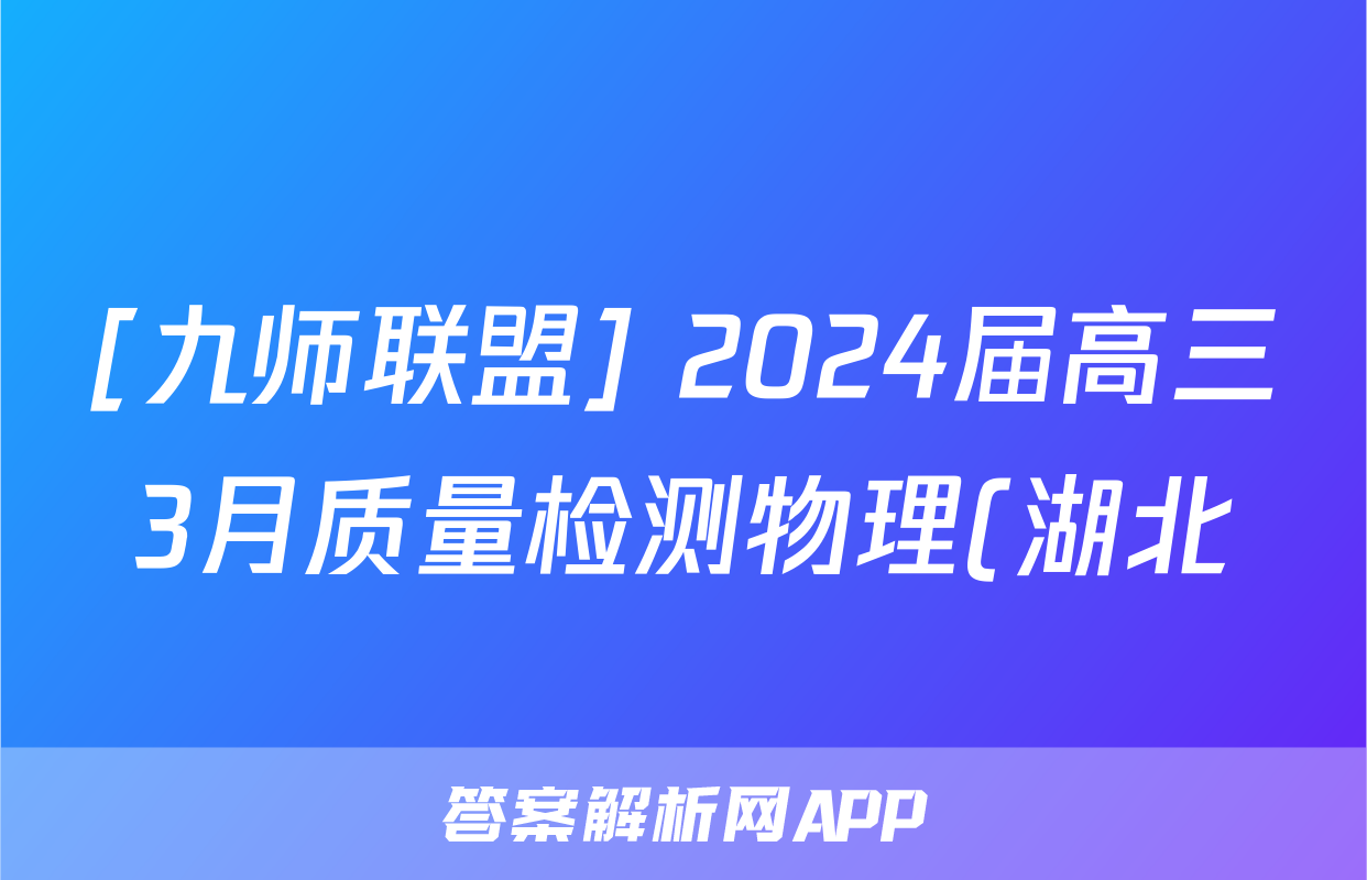 [九师联盟] 2024届高三3月质量检测物理(湖北)试题