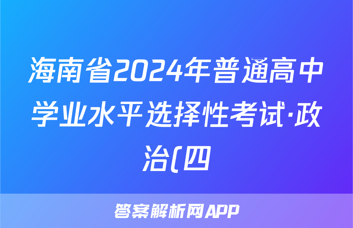 海南省2024年普通高中学业水平选择性考试·政治(四)4[24·(新高考)ZX·MNJ·政治·HAIN]答案