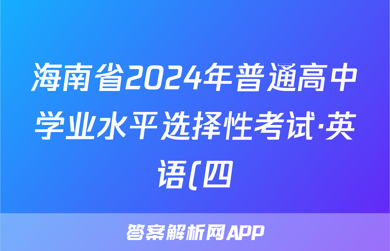 海南省2024年普通高中学业水平选择性考试·英语(四)4[24·(新高考)ZX·MNJ·英语·HAIN]答案