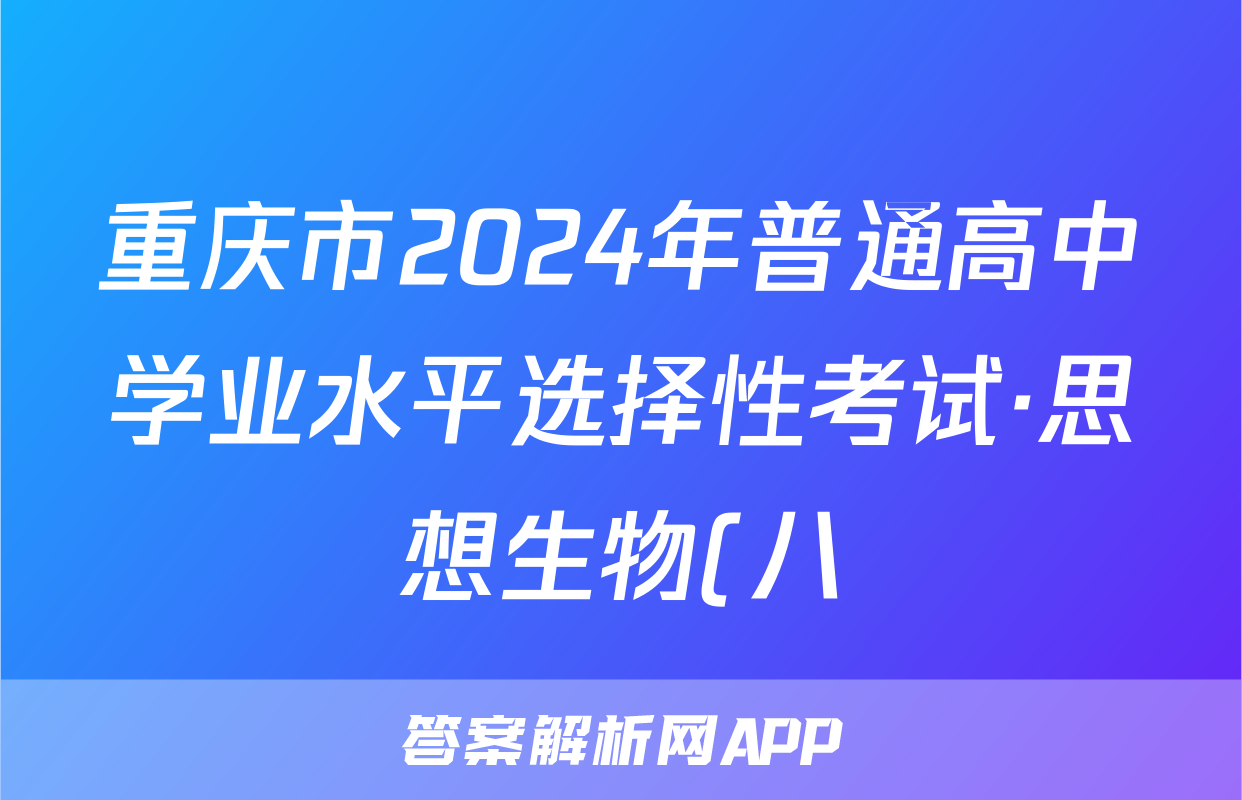 重庆市2024年普通高中学业水平选择性考试·思想生物(八)8[24·(新高考)ZX·MNJ·思想生物·CQ]试题