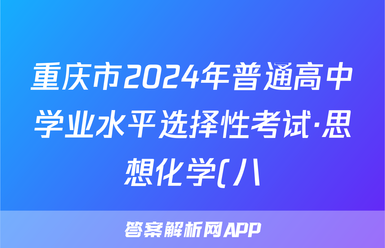 重庆市2024年普通高中学业水平选择性考试·思想化学(八)8[24·(新高考)ZX·MNJ·思想化学·CQ]试题