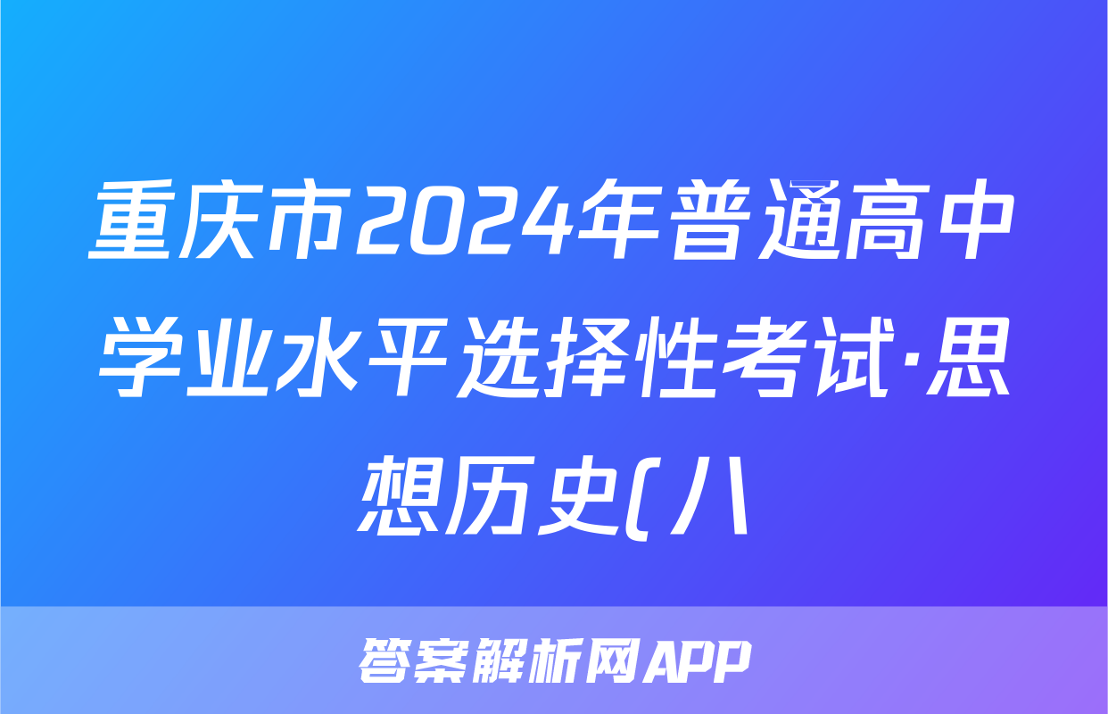 重庆市2024年普通高中学业水平选择性考试·思想历史(八)8[24·(新高考)ZX·MNJ·思想历史·CQ]试题