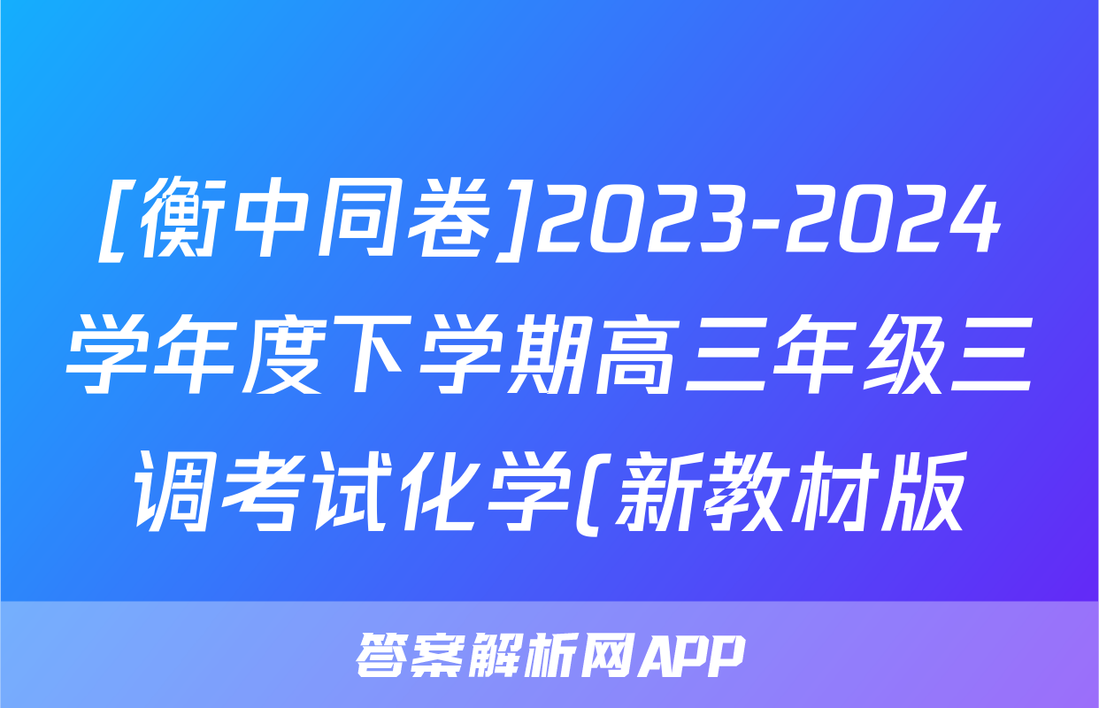 3、[衡中同卷]2023-2024学年度下学期高三年级一调考试化学(新教材版)试题