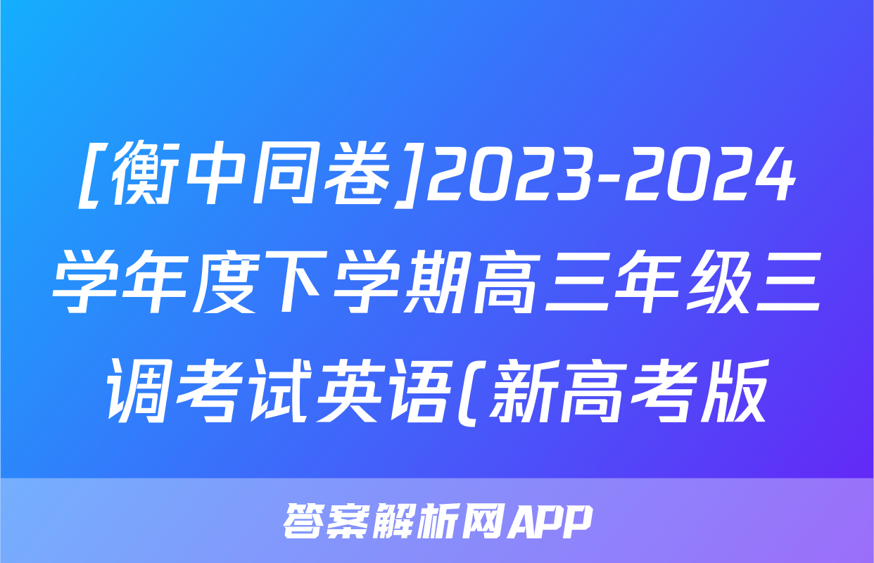 [衡中同卷]2023-2024学年度下学期高三年级三调考试英语(新高考版)试题
