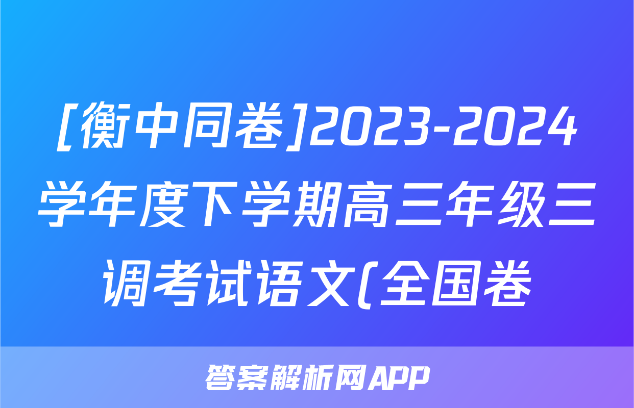 [衡中同卷]2023-2024学年度下学期高三年级三调考试语文(全国卷)试题