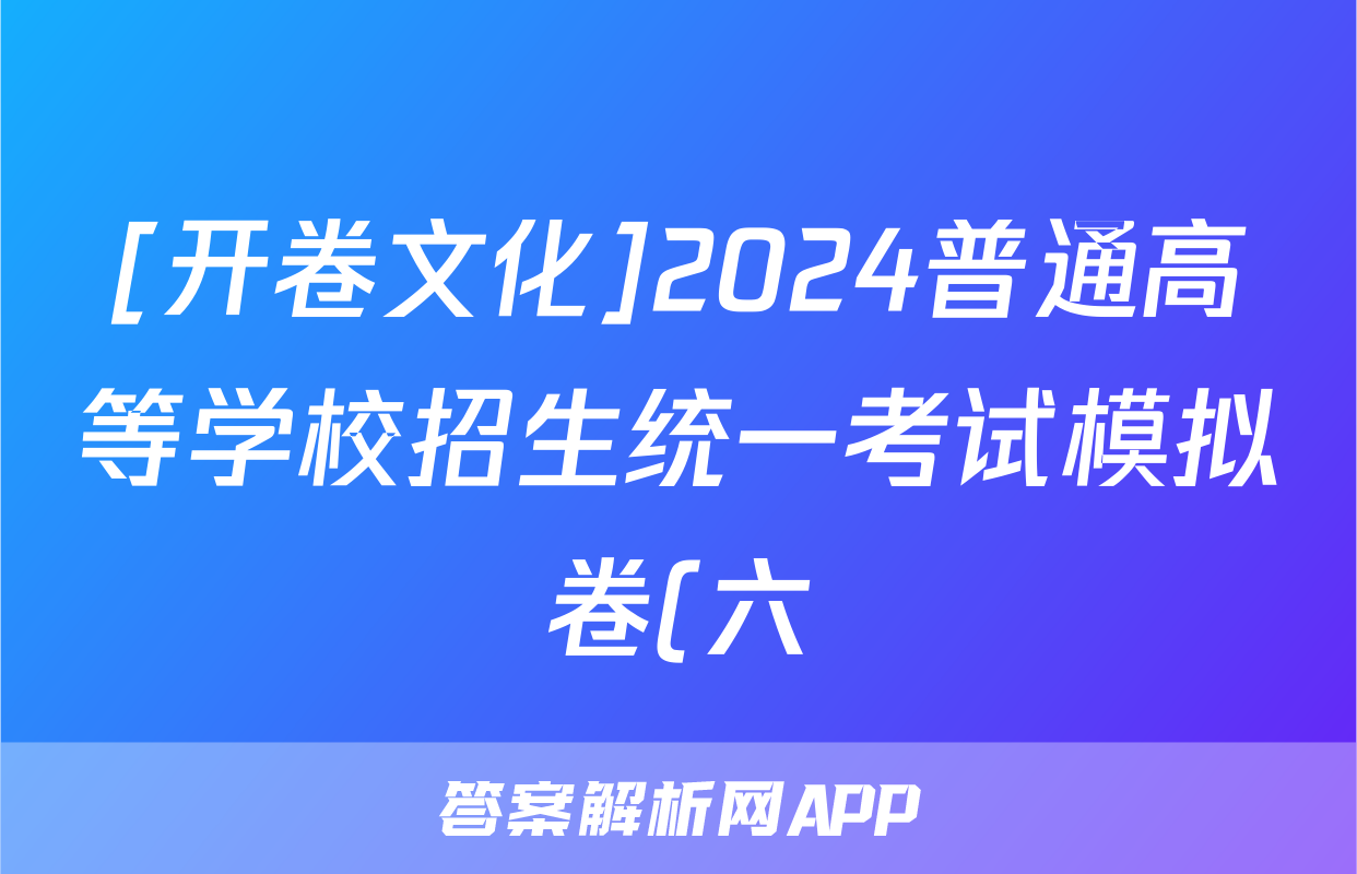 [开卷文化]2024普通高等学校招生统一考试模拟卷(六)6语文XQ试题正在持续更新,本期2024衡中同卷单元卷答案网为大家整理了相关试题及答案,供大家查缺补漏,高效提升成绩。