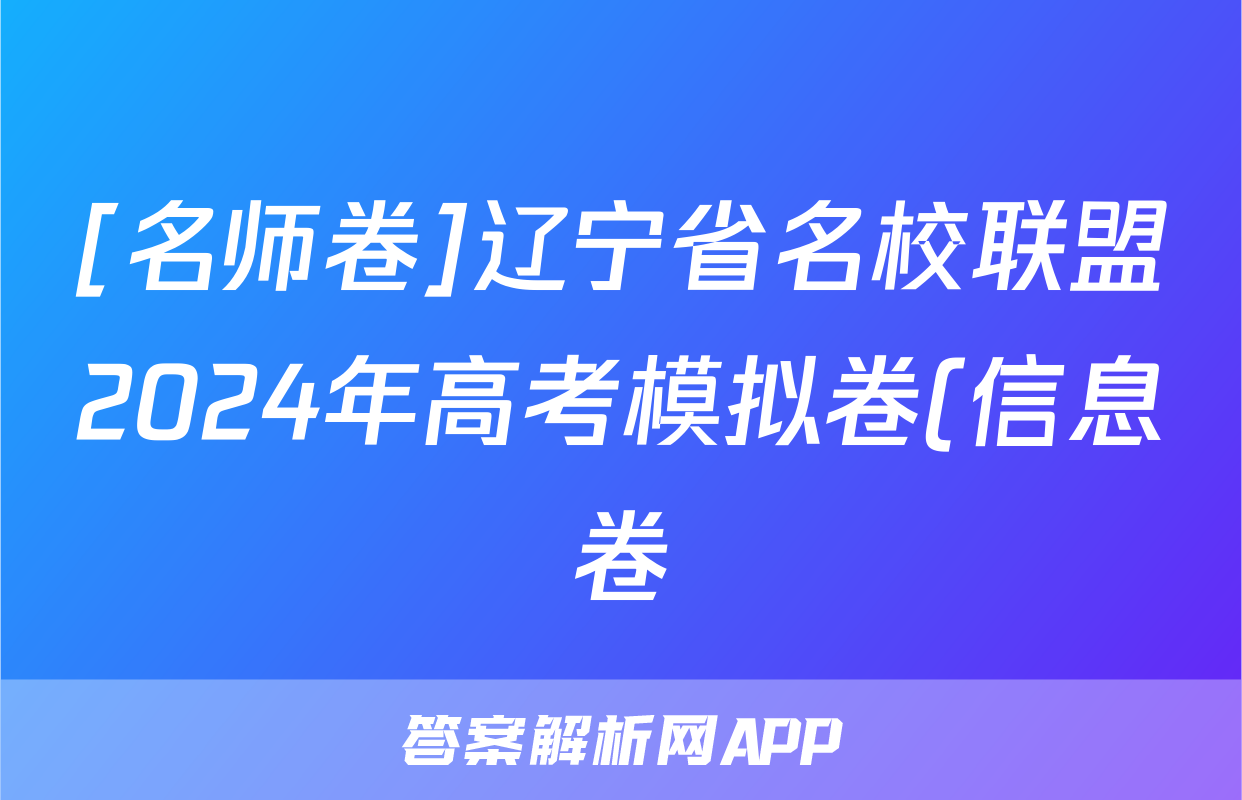 [名师卷]辽宁省名校联盟2024年高考模拟卷(信息卷)(一)1生物(辽宁省)答案