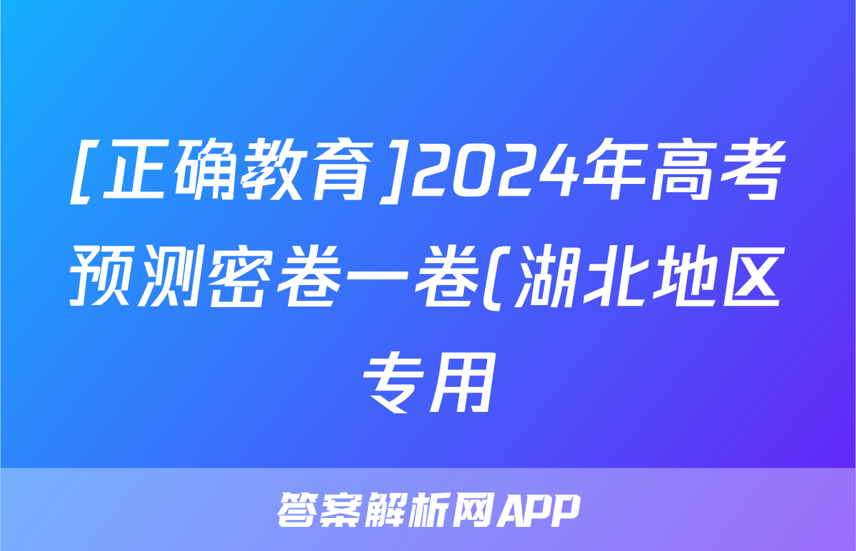 [正确教育]2024年高考预测密卷一卷(湖北地区专用)生物(湖北)答案