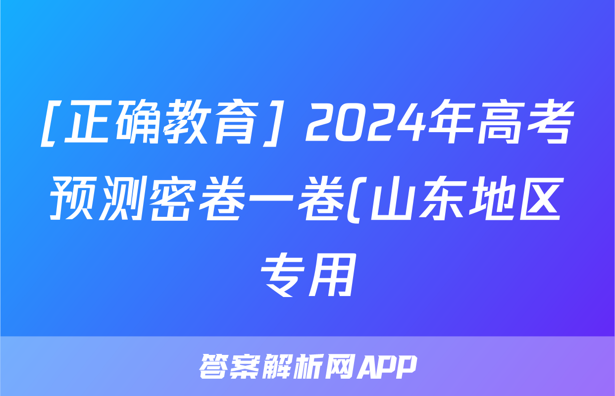 [正确教育] 2024年高考预测密卷一卷(山东地区专用)地理试题
