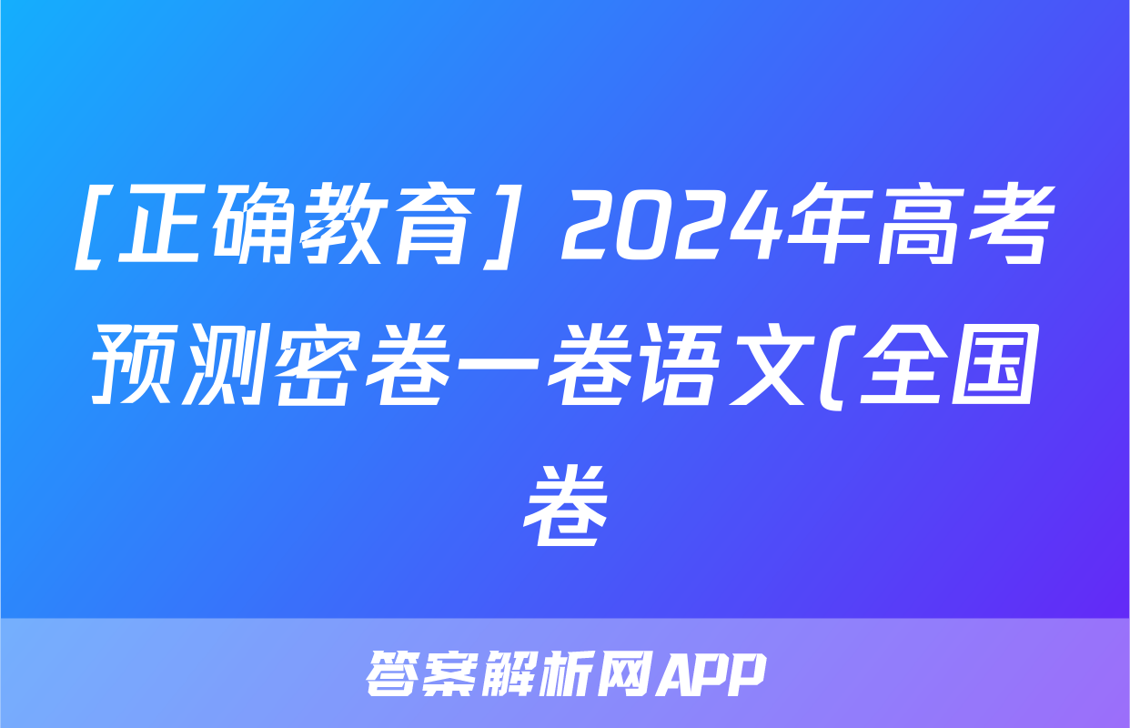 [正确教育] 2024年高考预测密卷一卷语文(全国卷)试题