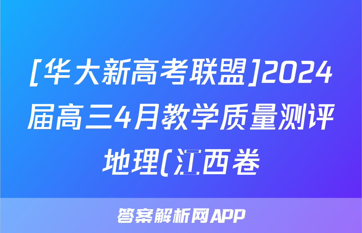 [华大新高考联盟]2024届高三4月教学质量测评地理(江西卷)答案
