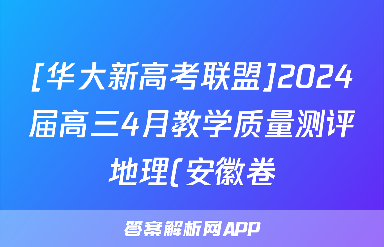 [华大新高考联盟]2024届高三4月教学质量测评地理(安徽卷)答案