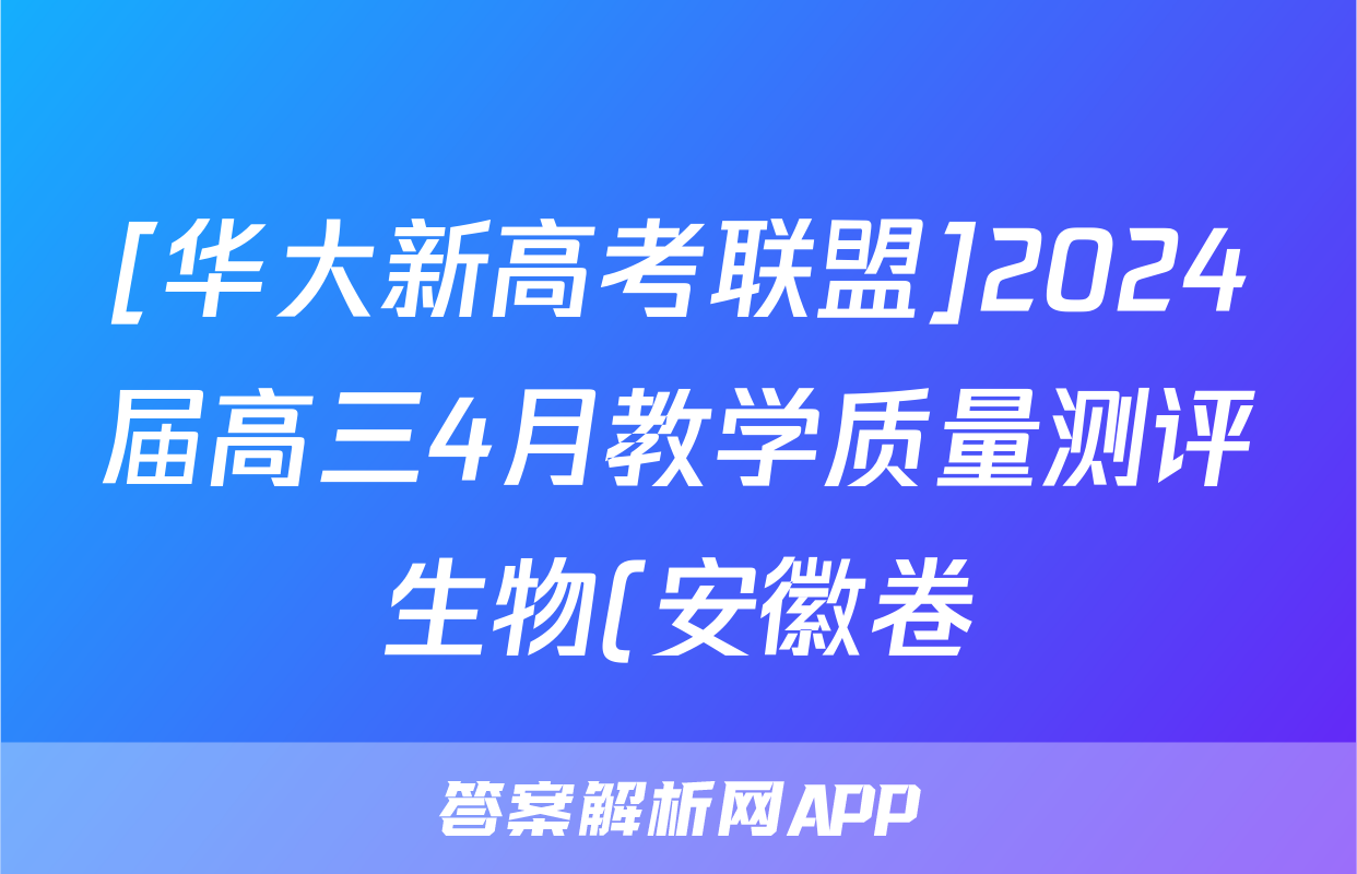 [华大新高考联盟]2024届高三4月教学质量测评生物(安徽卷)答案