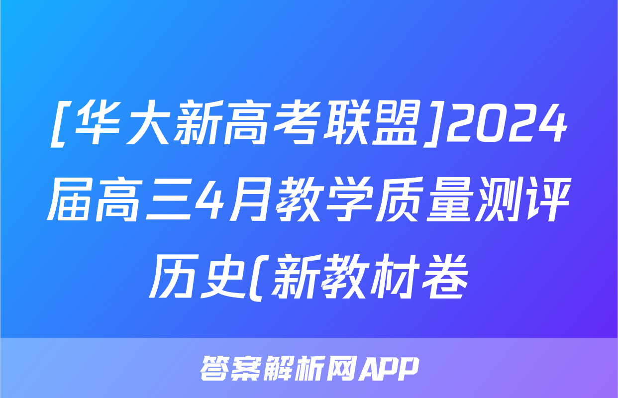 [华大新高考联盟]2024届高三4月教学质量测评历史(新教材卷)答案