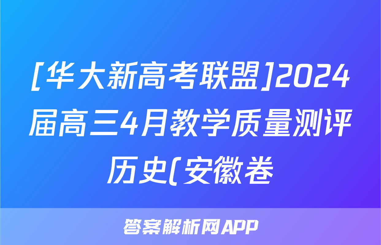 [华大新高考联盟]2024届高三4月教学质量测评历史(安徽卷)试题