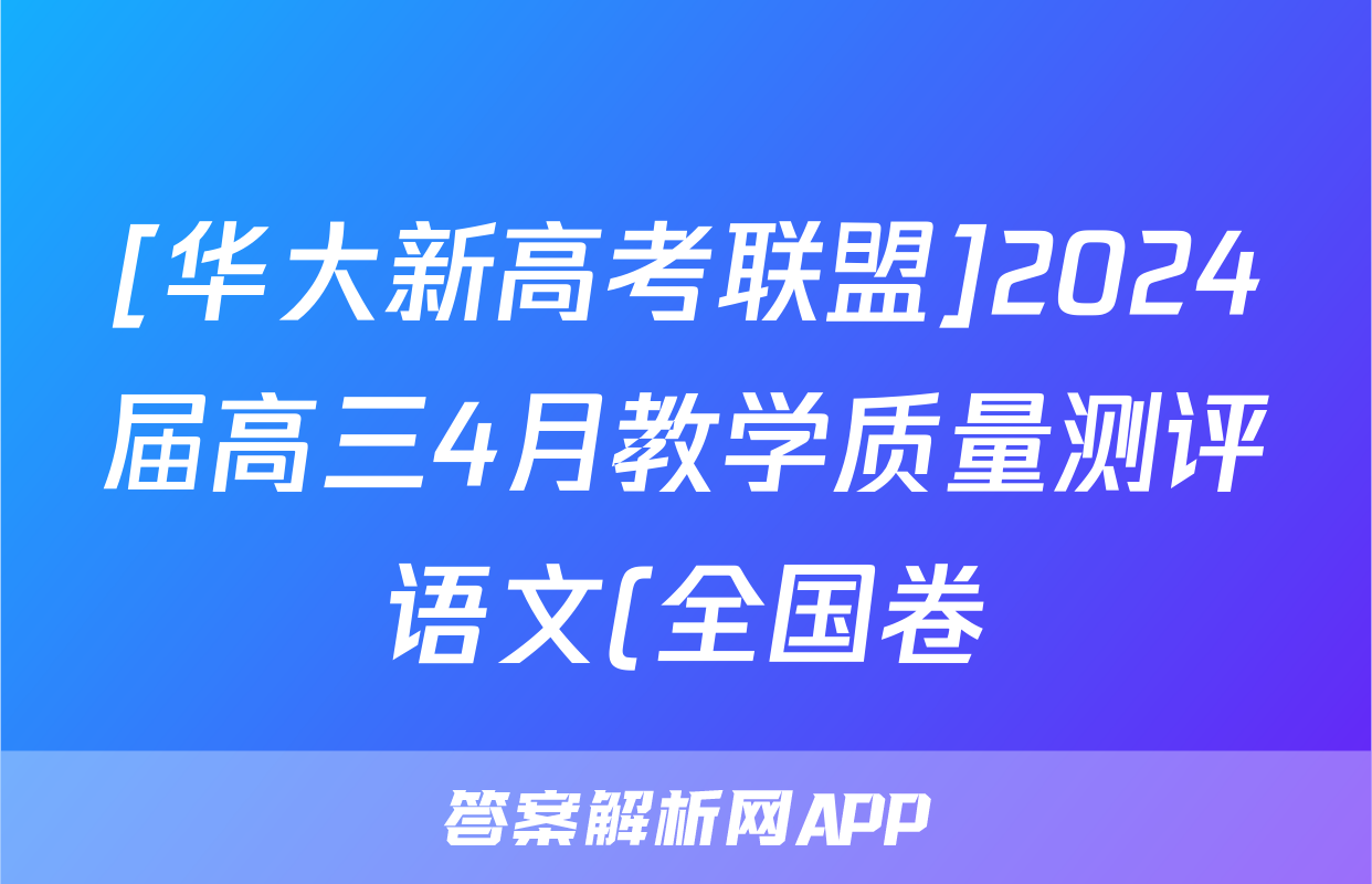 [华大新高考联盟]2024届高三4月教学质量测评语文(全国卷)试题
