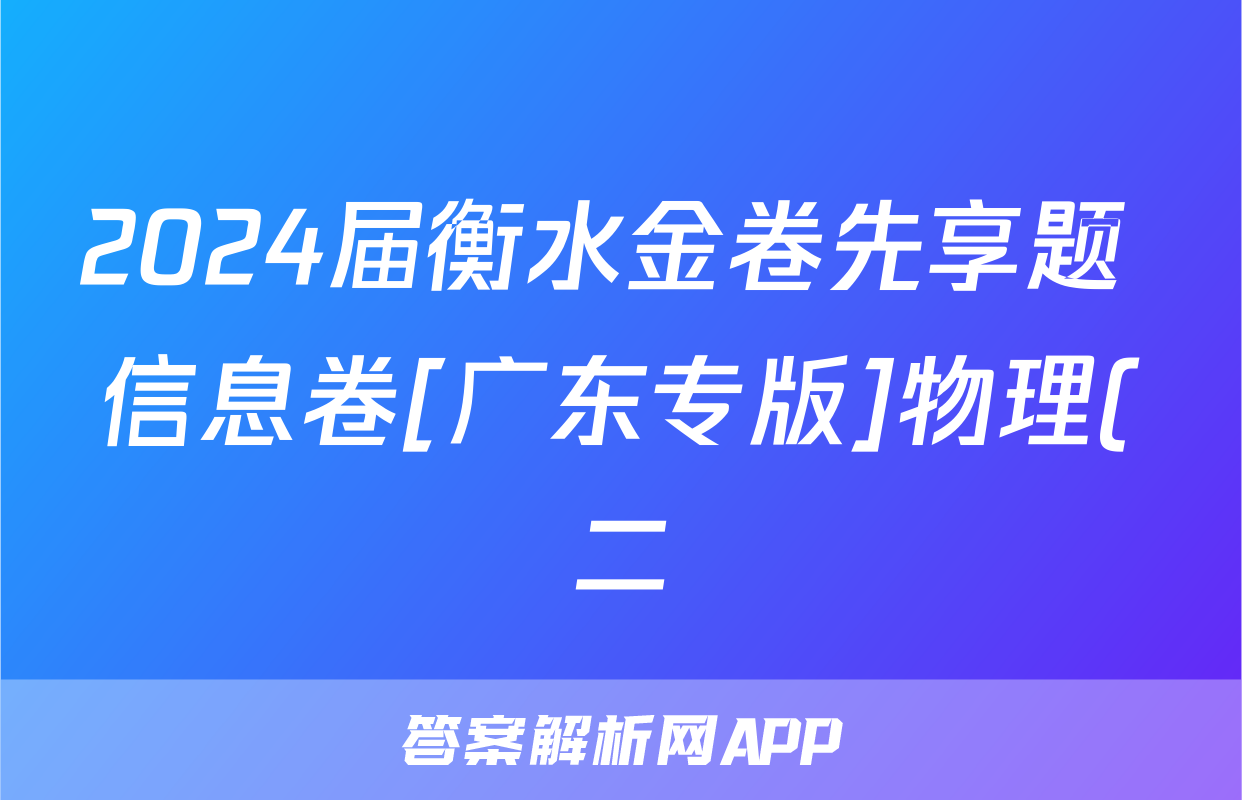2024届衡水金卷先享题 信息卷[广东专版]物理(二)2答案