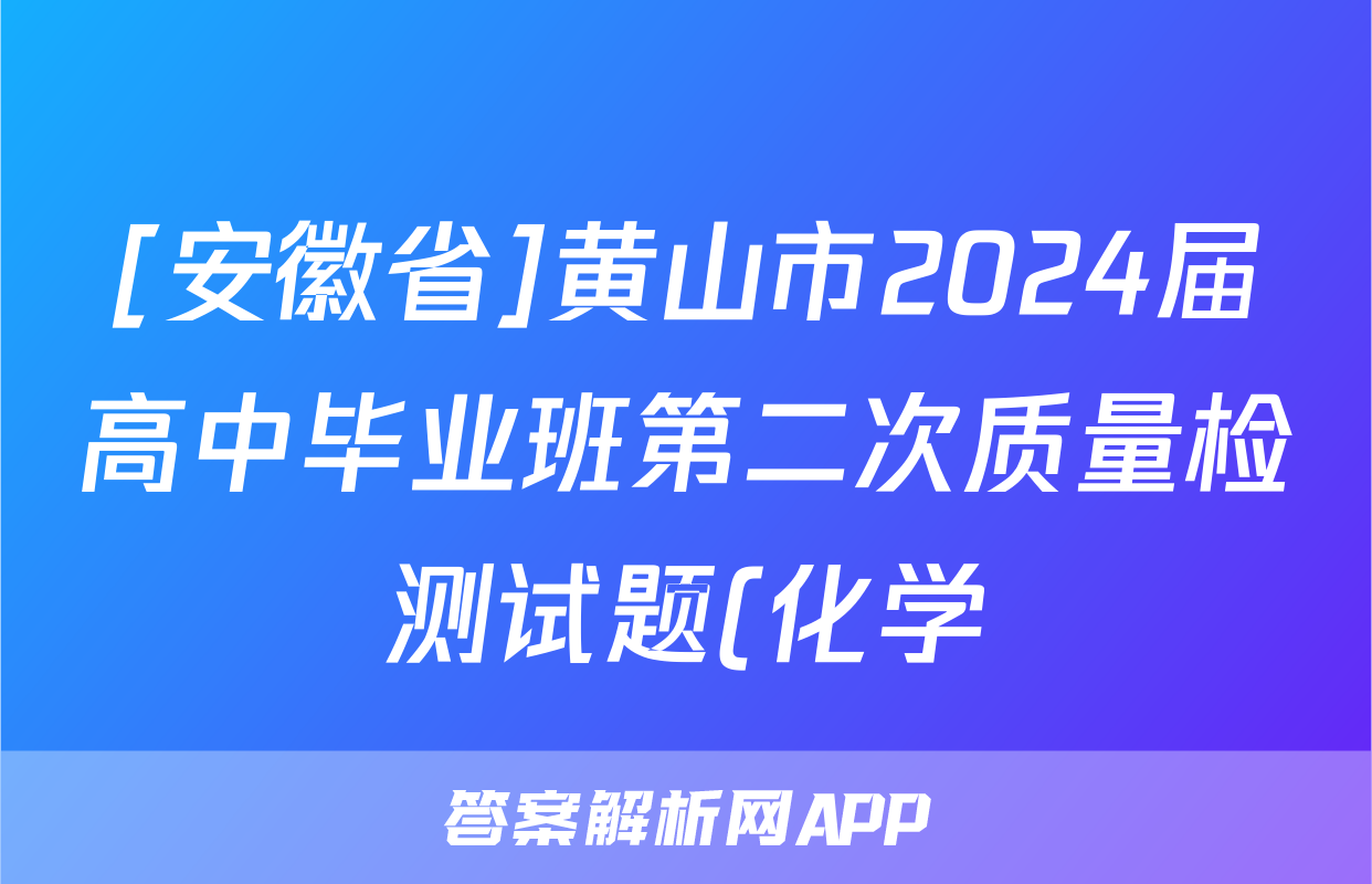 [安徽省]黄山市2024届高中毕业班第二次质量检测试题(化学)