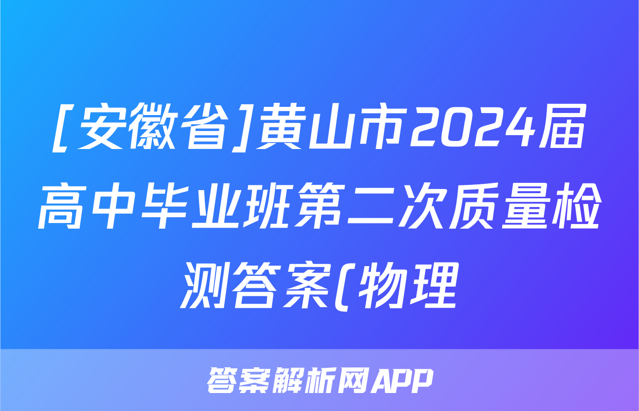 [安徽省]黄山市2024届高中毕业班第二次质量检测答案(物理)