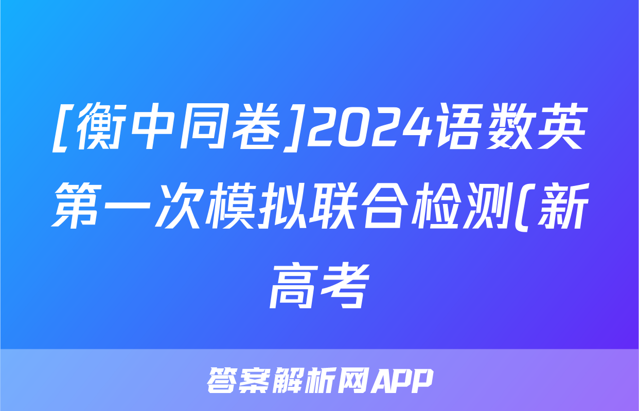 [衡中同卷]2024语数英第一次模拟联合检测(新高考)各科试卷及答案答案(化学)