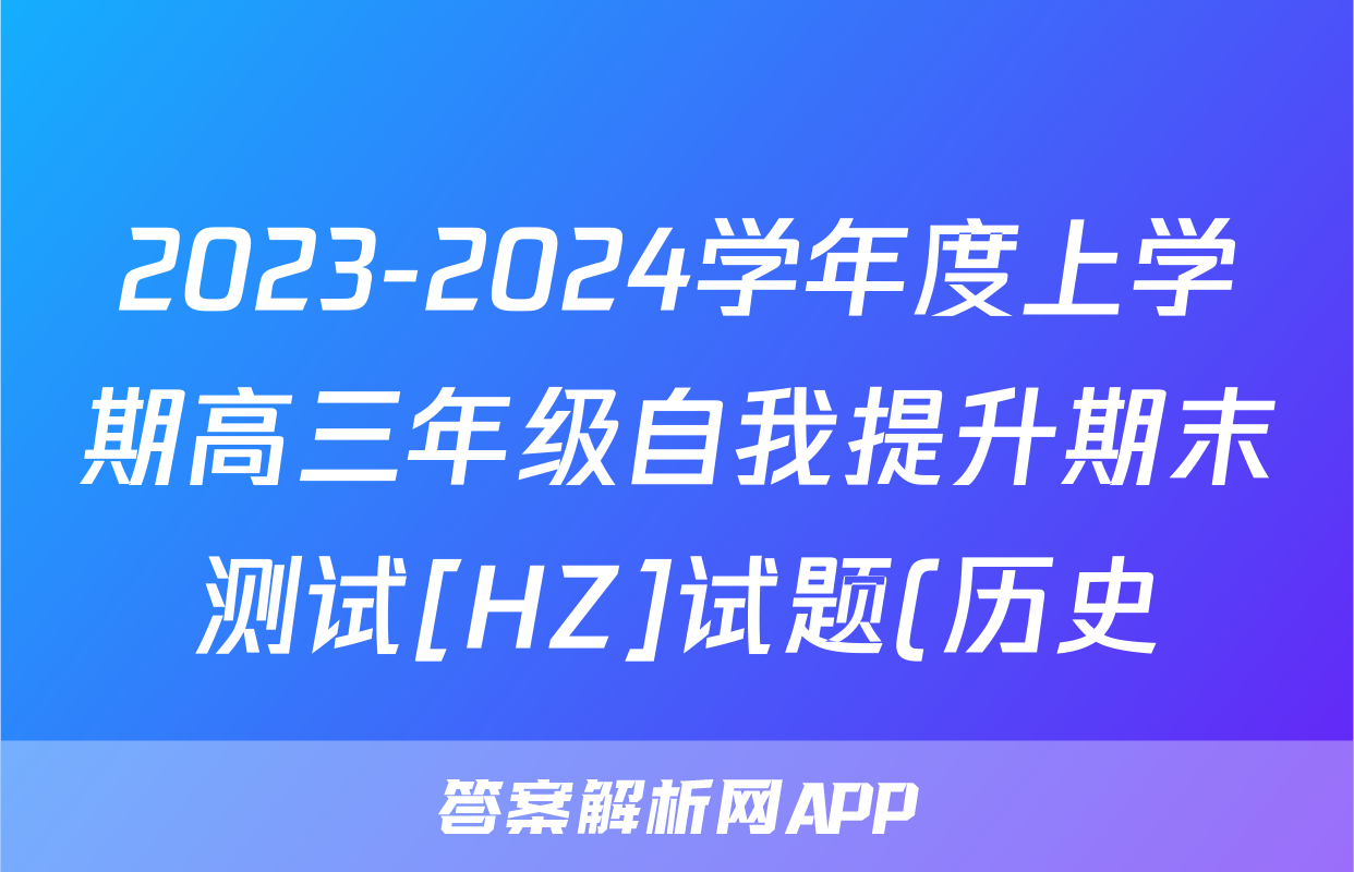 2023-2024学年度上学期高三年级自我提升期末测试[HZ]试题(历史)