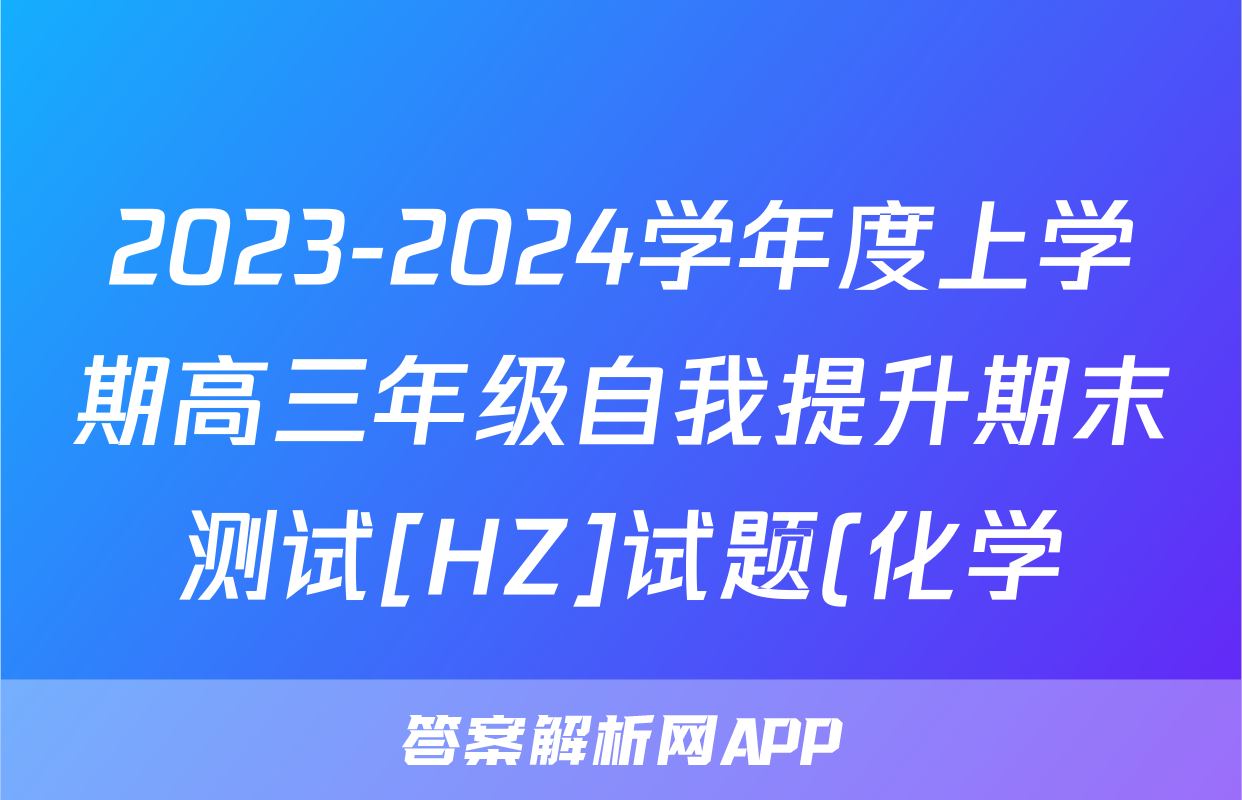 2023-2024学年度上学期高三年级自我提升期末测试[HZ]试题(化学)