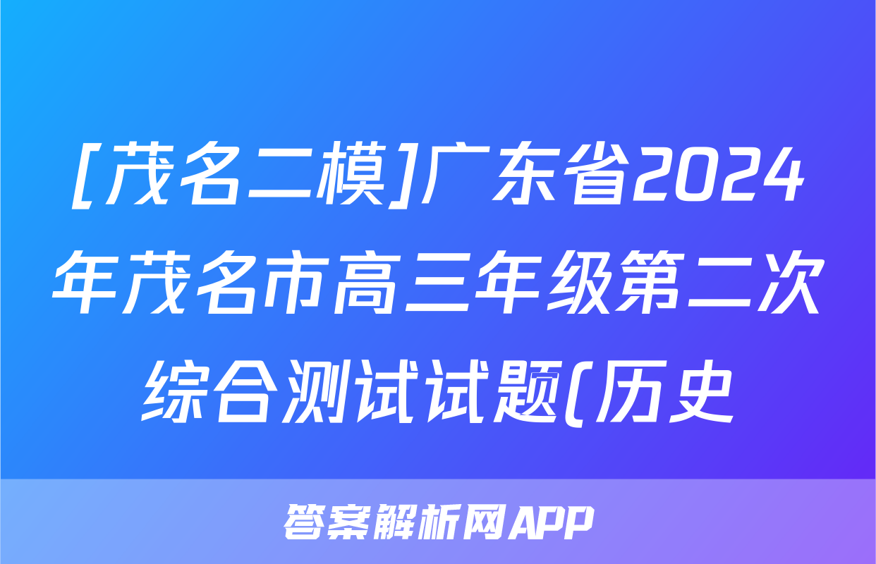 [茂名二模]广东省2024年茂名市高三年级第二次综合测试试题(历史)