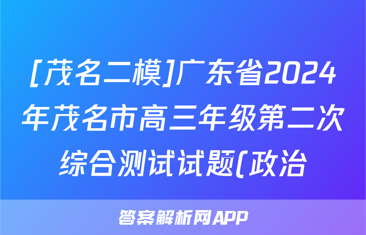 [茂名二模]广东省2024年茂名市高三年级第二次综合测试试题(政治)