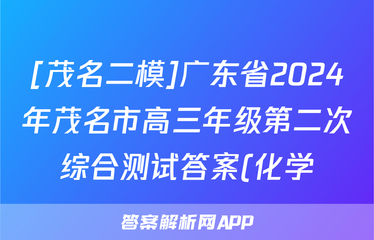 [茂名二模]广东省2024年茂名市高三年级第二次综合测试答案(化学)