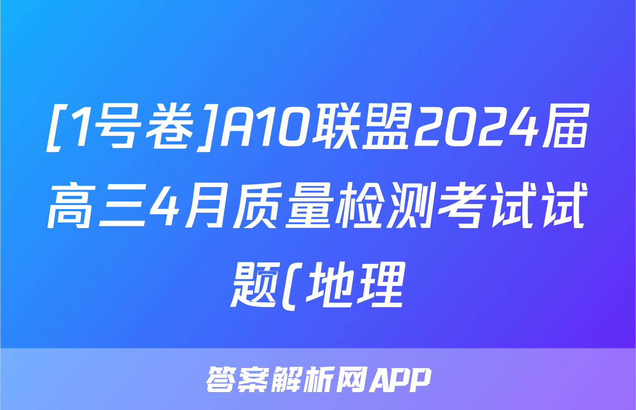 [1号卷]A10联盟2024届高三4月质量检测考试试题(地理)