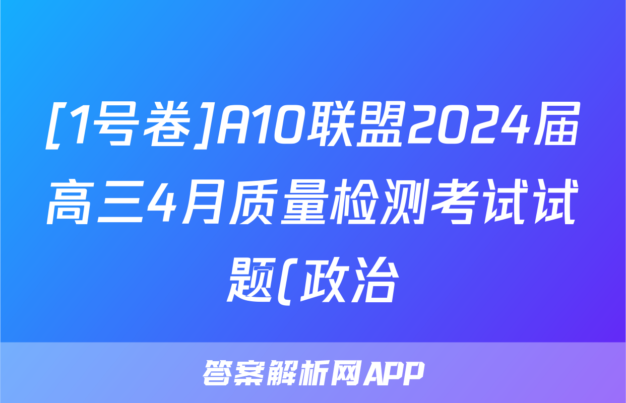 [1号卷]A10联盟2024届高三4月质量检测考试试题(政治)