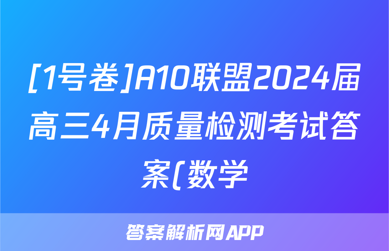 [1号卷]A10联盟2024届高三4月质量检测考试答案(数学)正在持续更新,本期2024衡中同卷单元卷答案网为大家整理了相关试题及答案,供大家查缺补漏,高效提升成绩。