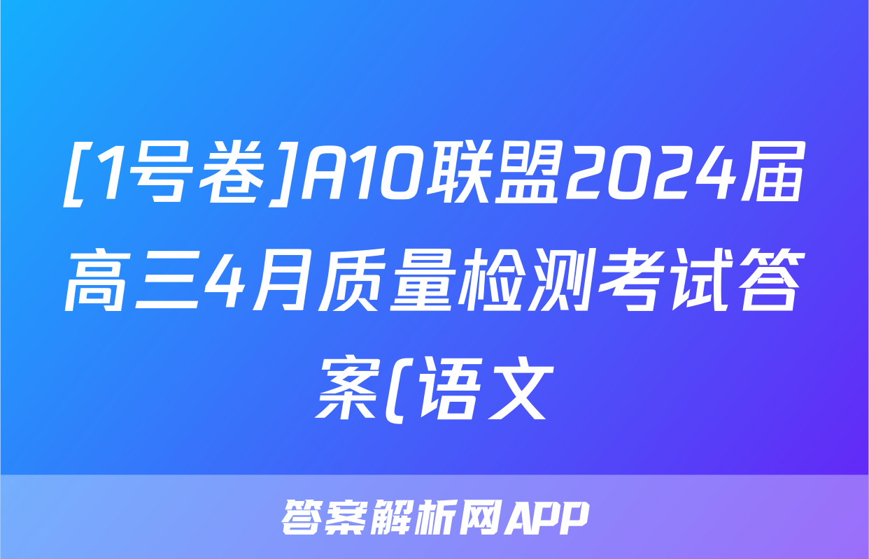 [1号卷]A10联盟2024届高三4月质量检测考试答案(语文)