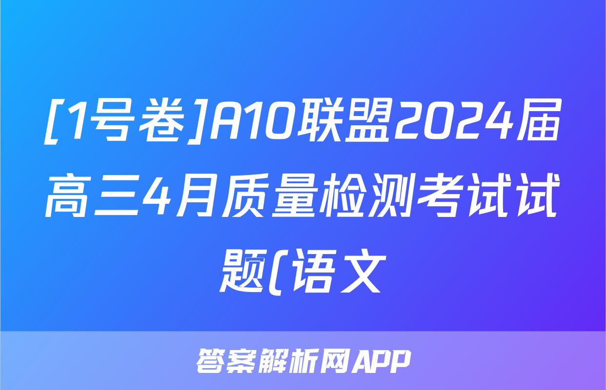 [1号卷]A10联盟2024届高三4月质量检测考试试题(语文)