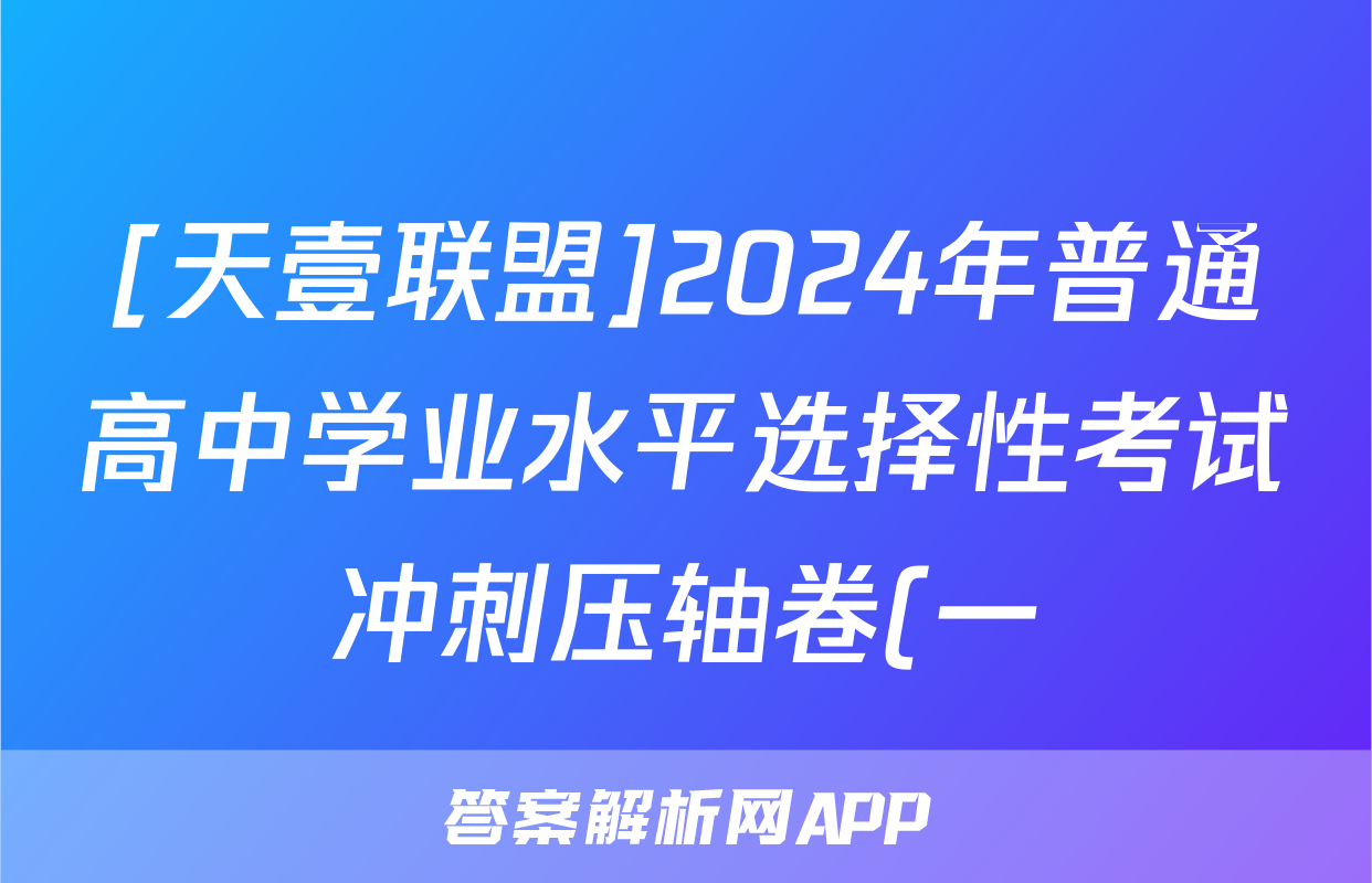 [天壹联盟]2024年普通高中学业水平选择性考试冲刺压轴卷(一)1试题(化学)