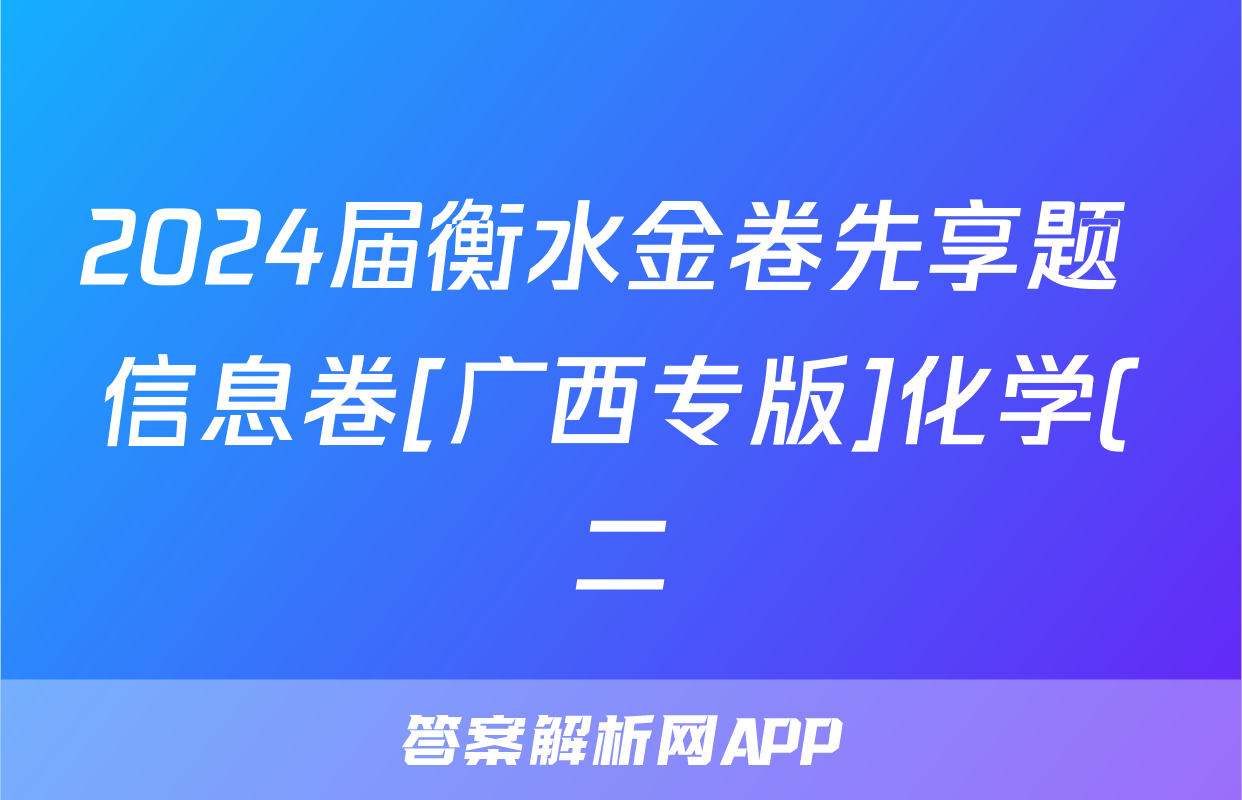 2024届衡水金卷先享题 信息卷[广西专版]化学(二)2答案