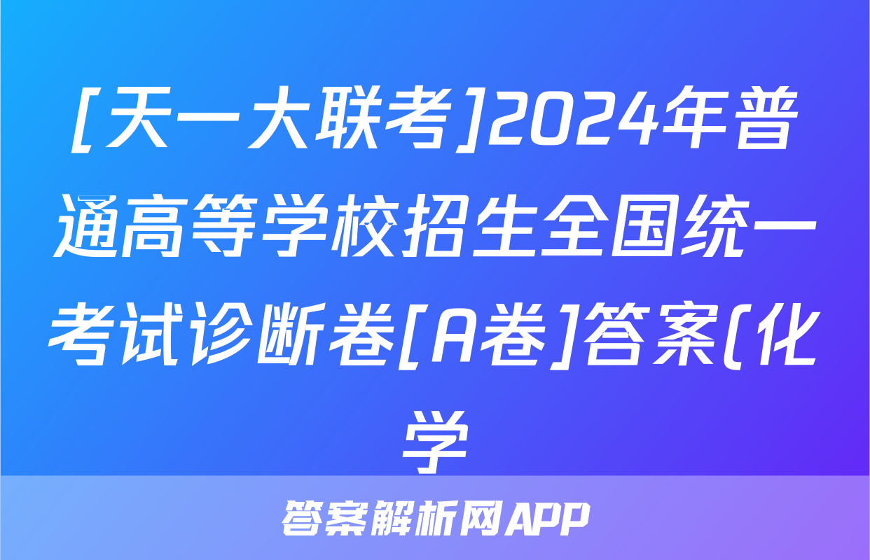 [天一大联考]2024年普通高等学校招生全国统一考试诊断卷[A卷]答案(化学)
