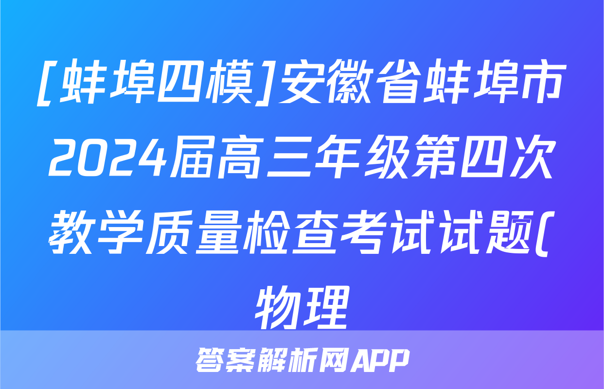 [蚌埠四模]安徽省蚌埠市2024届高三年级第四次教学质量检查考试试题(物理)