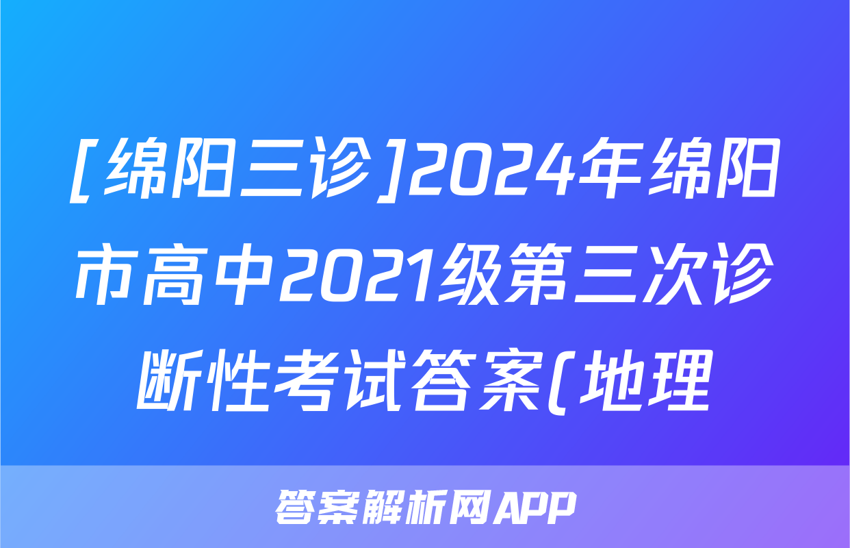 [绵阳三诊]2024年绵阳市高中2021级第三次诊断性考试答案(地理)