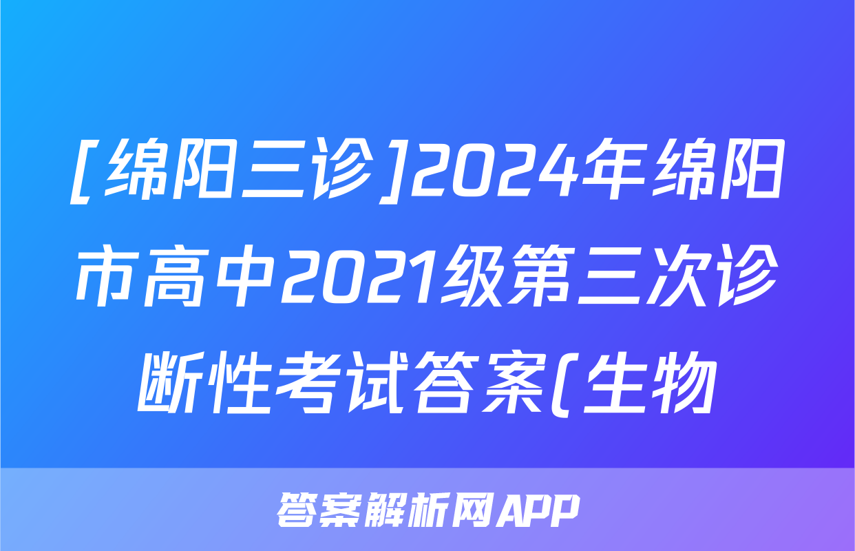 [绵阳三诊]2024年绵阳市高中2021级第三次诊断性考试答案(生物)