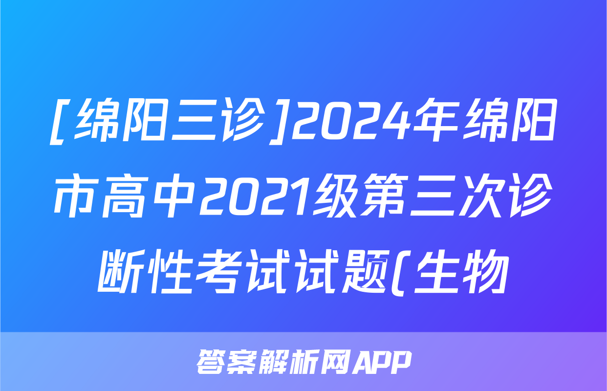 [绵阳三诊]2024年绵阳市高中2021级第三次诊断性考试试题(生物)