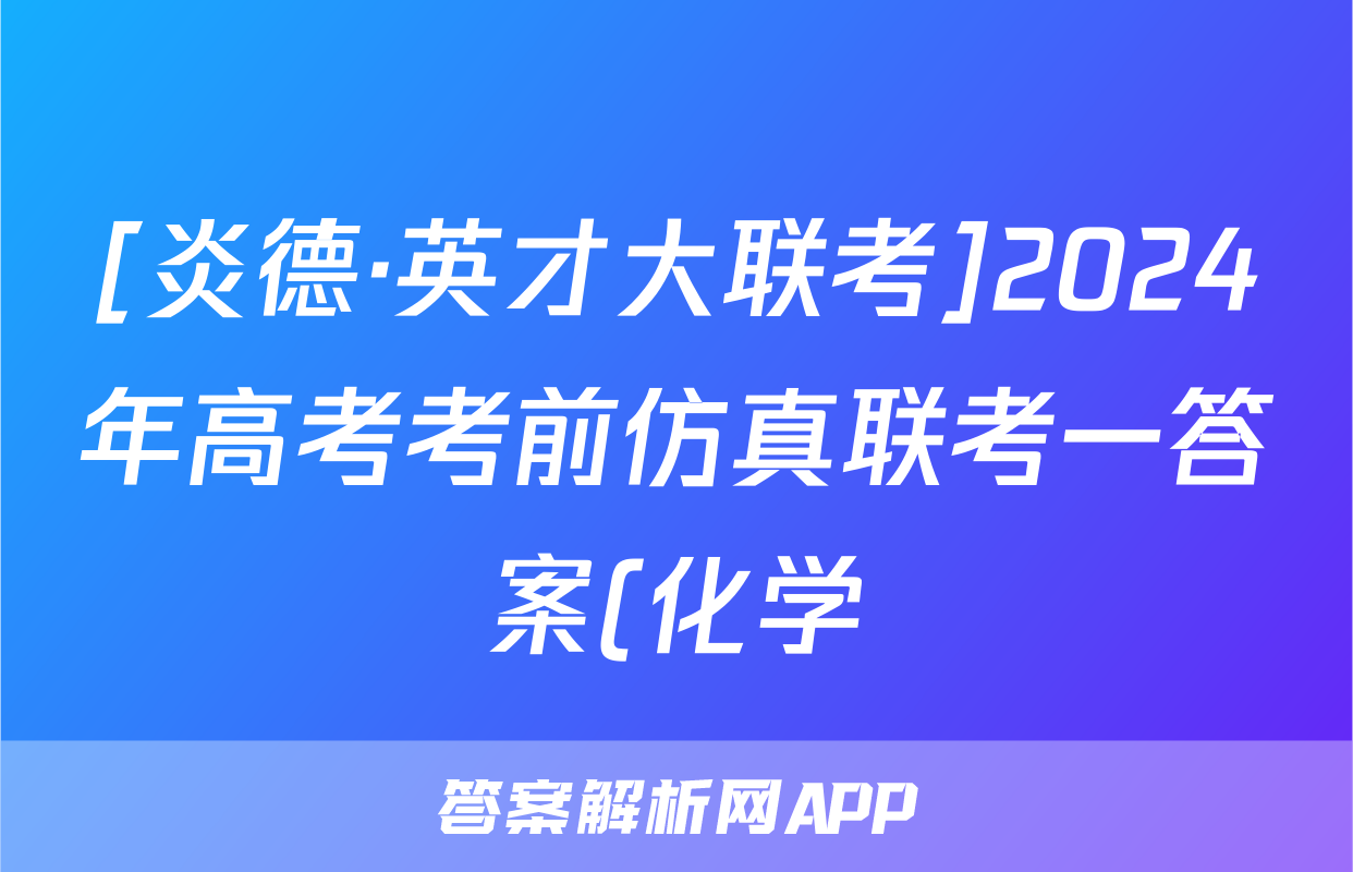 [炎德·英才大联考]2024年高考考前仿真联考一答案(化学)