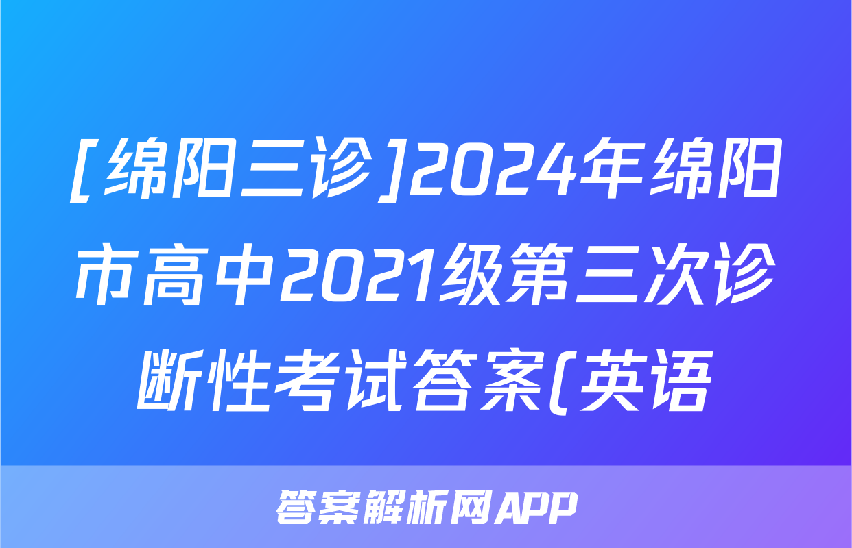 [绵阳三诊]2024年绵阳市高中2021级第三次诊断性考试答案(英语)