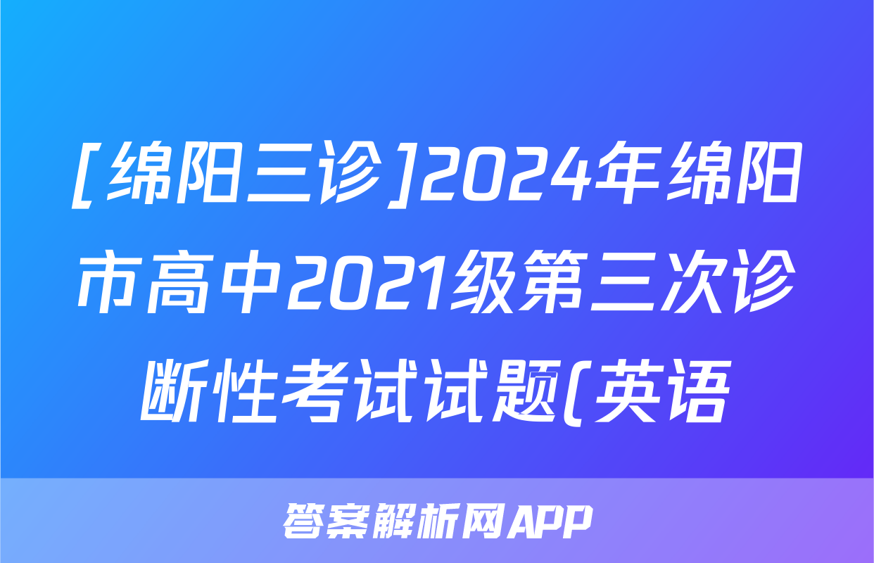 [绵阳三诊]2024年绵阳市高中2021级第三次诊断性考试试题(英语)