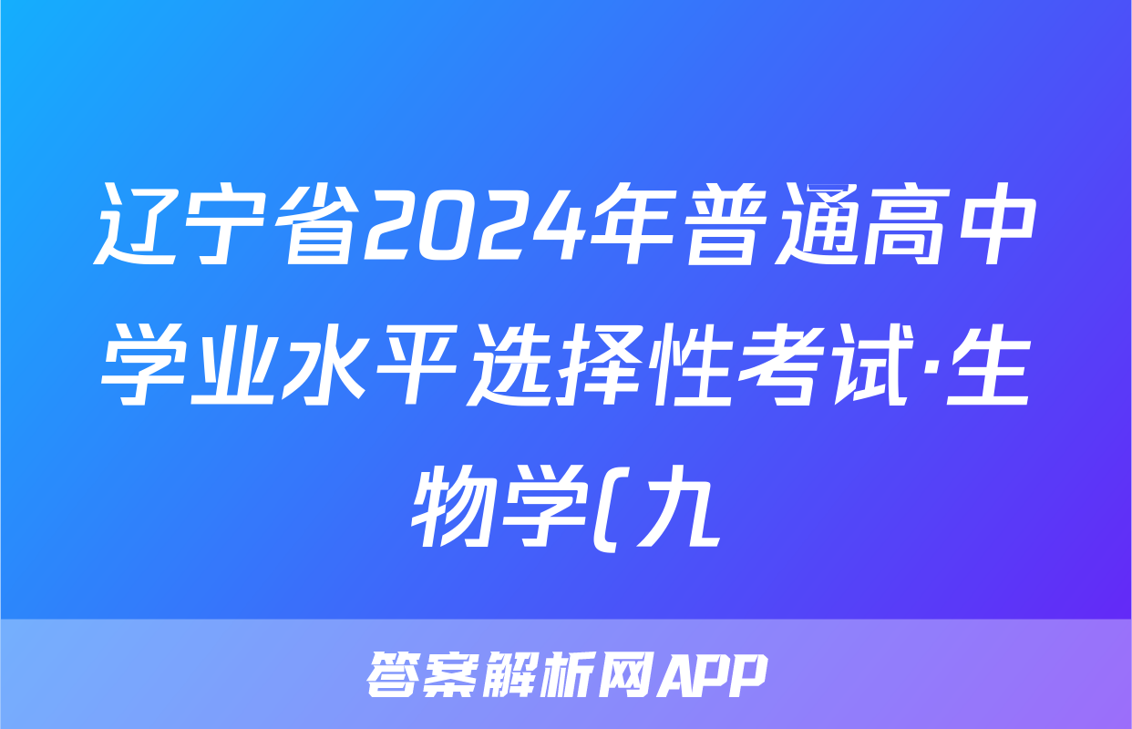 辽宁省2024年普通高中学业水平选择性考试·生物学(九)9[24·(新高考)ZX·MNJ·生物学·LN]试题